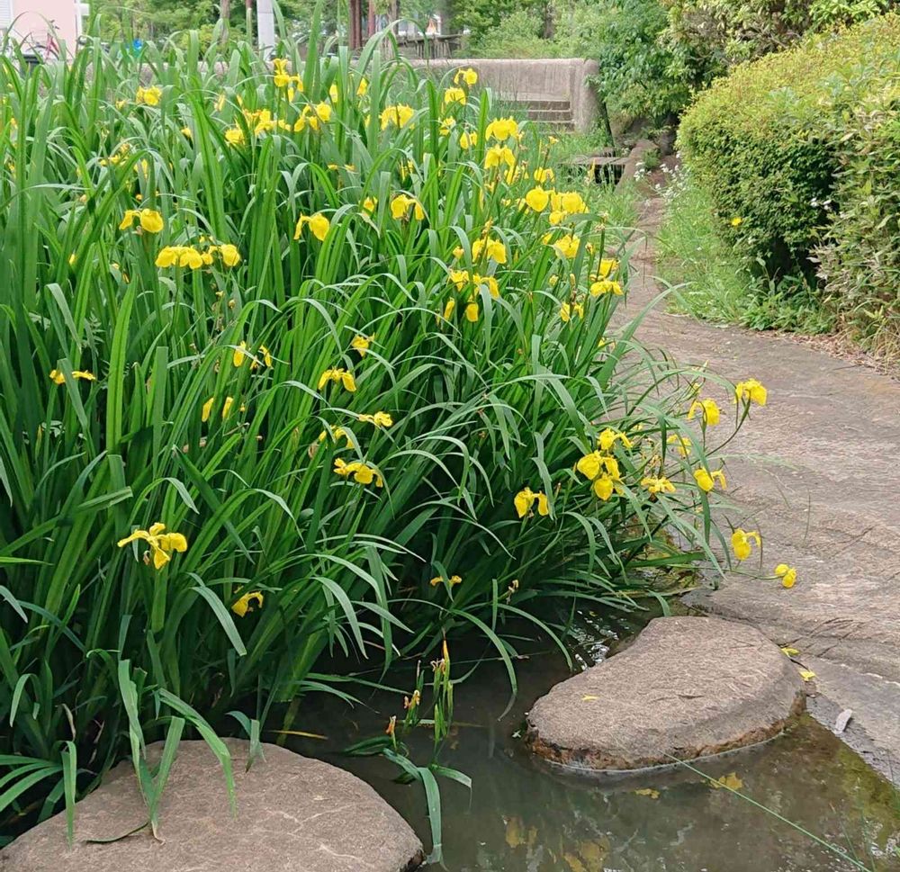 パッと明るい黄菖蒲の群生。