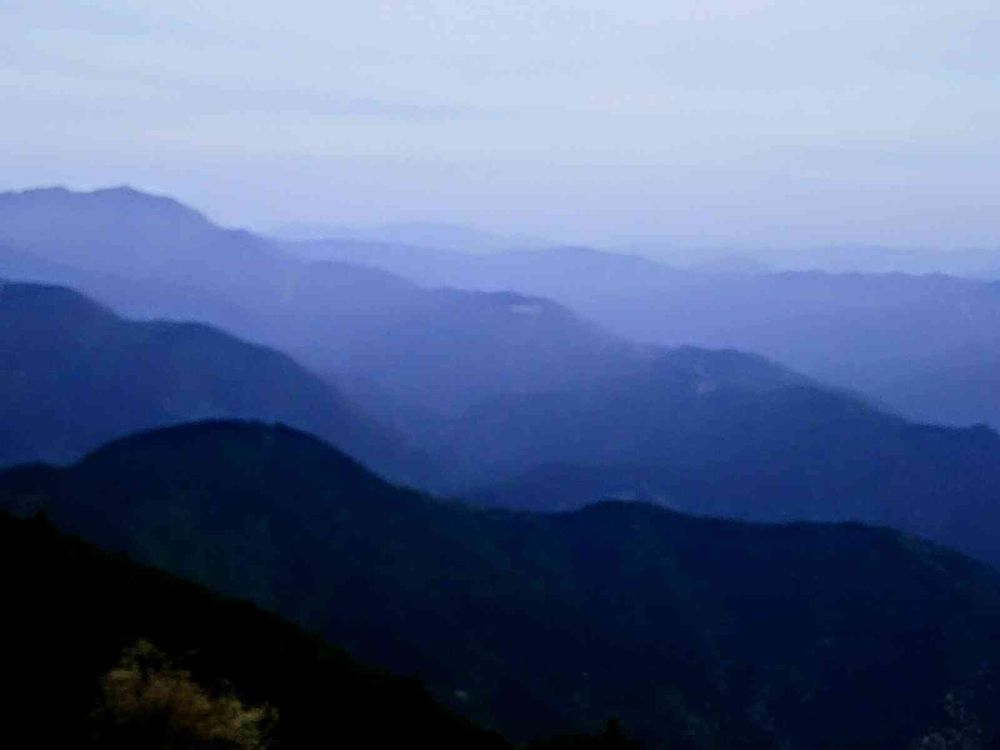 慌てて山を降りながら夕刻の藍になりゆく山々を眺む