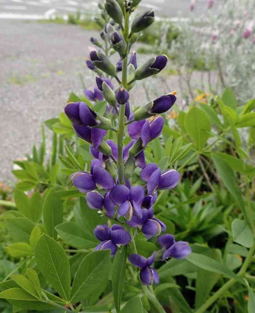 バプテシア 「ブルーベリーサンデー」です。ムラサキセンダイハギ(バプテシア )の選抜園芸品種で、原種より青紫が鮮やかで花立が良いというのがウリです😊昨年の3月に購入したもので、初めて開花を見ました💙