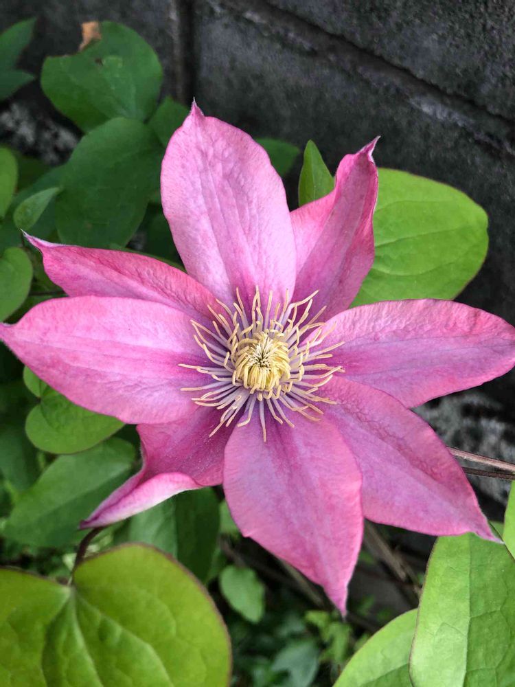 写真では、紫がかったピンクに見えますが、サーモンピンクっぽいクレマチス✨が咲きました。