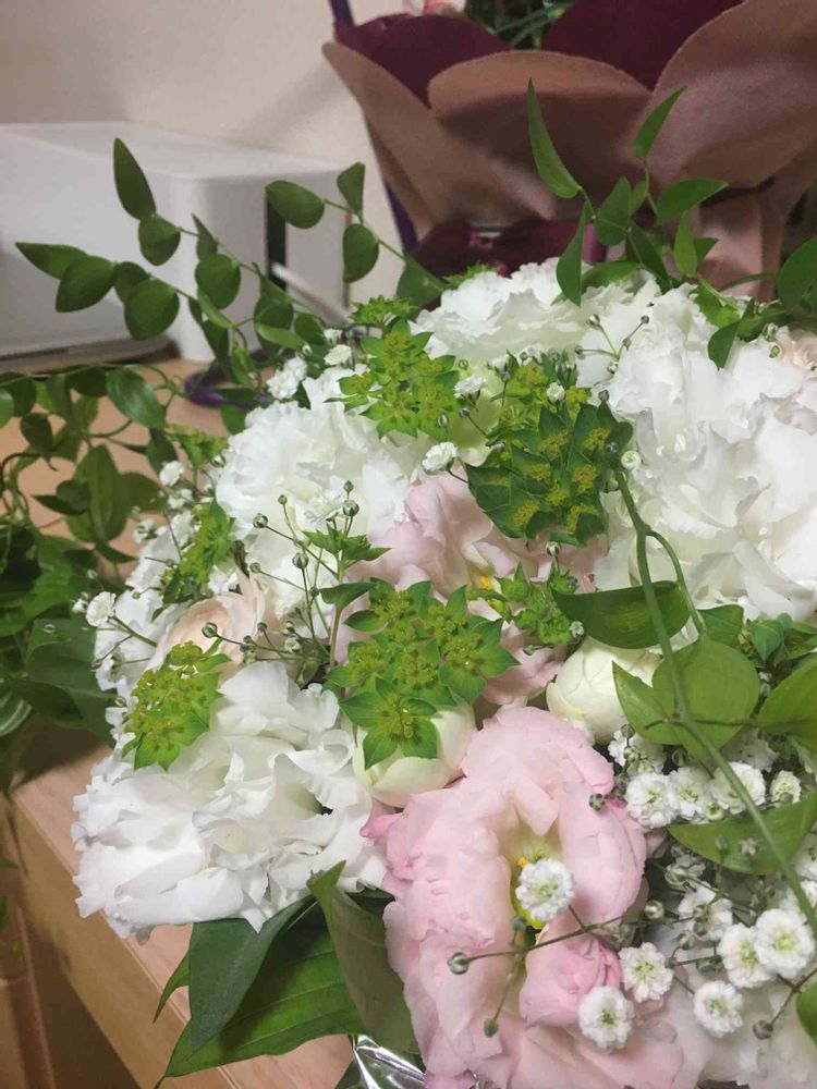 結婚式のおみやげで素敵なテーブルフラワーをいただきました。グリーンの小さな花?の集まりとツルが何という名前かわからないのですが知ってる方教えてください。