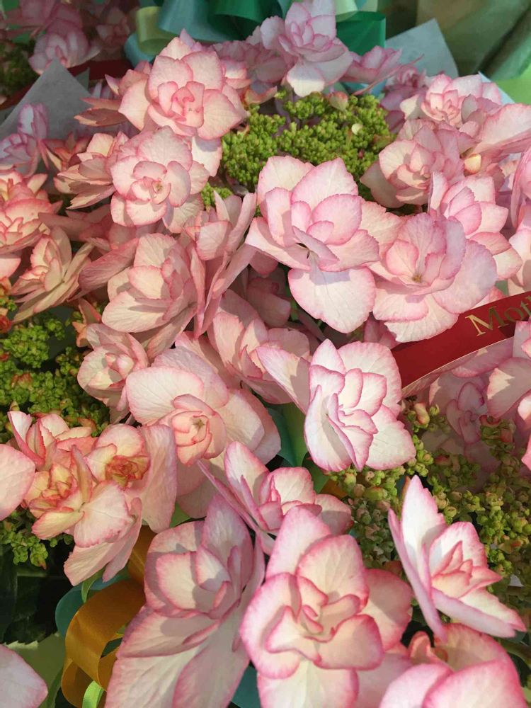 今までは母の日と言えば カーネーションだけだったのに(それでも色や形は改良されたよね)、最近は紫陽花率も高いよね〜。(^^)