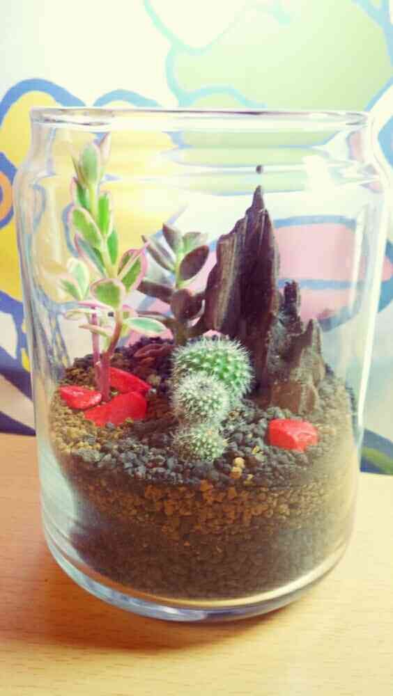 水やりは、はじめに霧吹きで、用土に吹きかけ。ガラス容器の中側を拭き取り、蓋をします。数時間後に同じ作業。これを、数日します。これで、一月は、水やりしません。内容物にもよりますけどね。