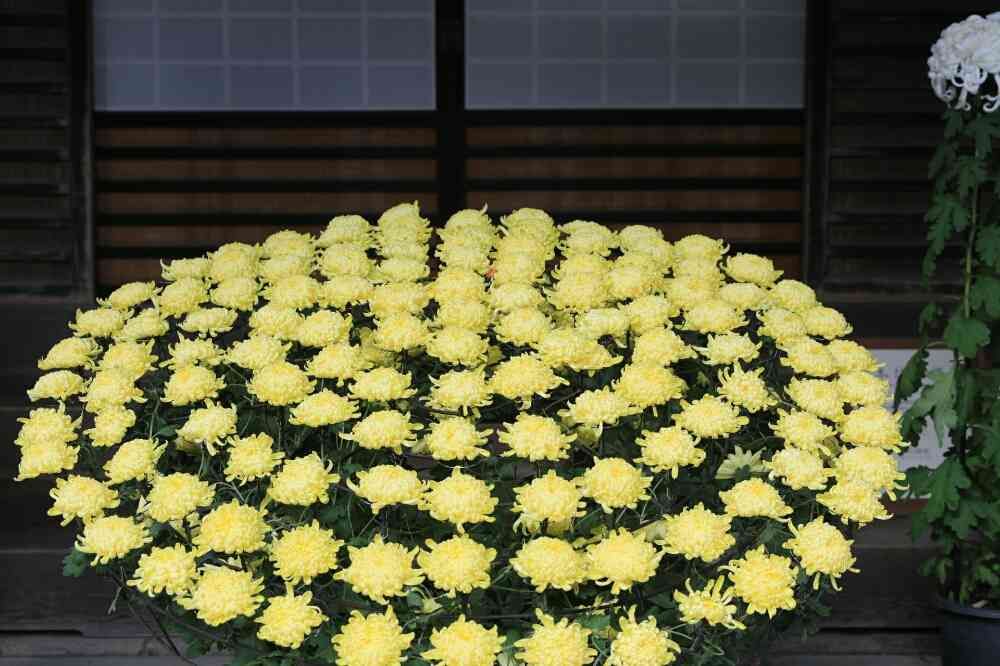 菊花展の千輪仕立てですね。✿゚❀.(*´▽`*)❀.゚✿綺麗です。1本の苗から枝数を増やして、1000本以上の枝を育てるのものです🤗詳しいでしょう💕実は今、みどりのまとめを作っています。それに菊花展が、載っていて詳しくなりました👍