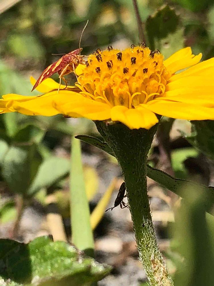 アメリカハマグルマ花の蜜を吸う蛾🧡