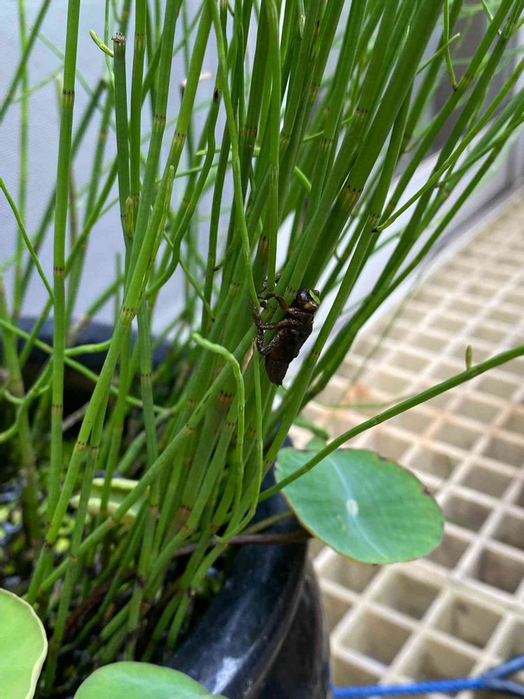 ヤゴが水中から上がってきて