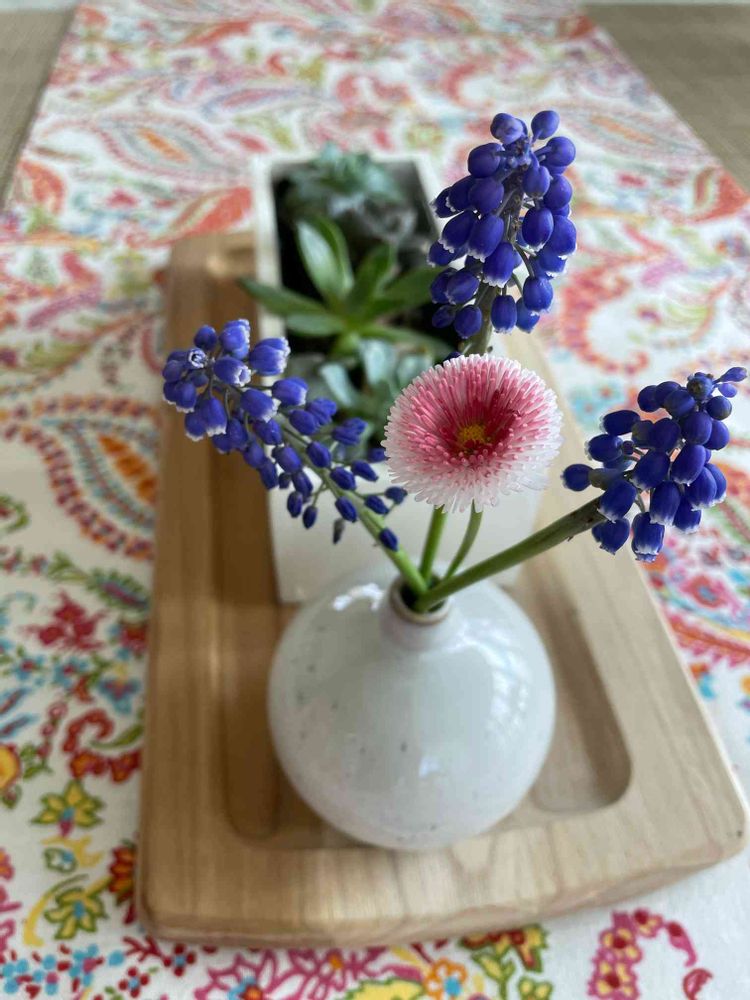 ムスカリさんとイングリッシュデイジーをテーブルに。