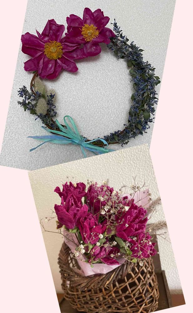 庭のお花のドライで作ったリースとスワッグです。❤️