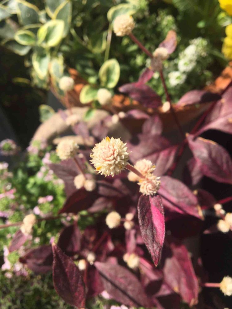 千日紅さんの白いボンボンの中がうっすらピンク色。