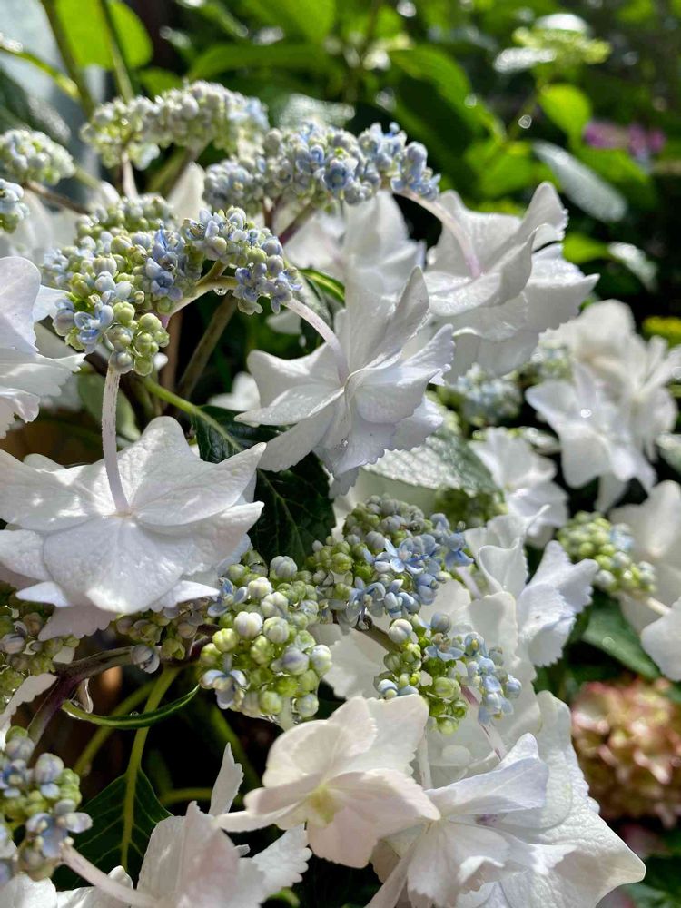 装飾花の白さ 両性花の薄いブルー💕かなりゴージャス🎶