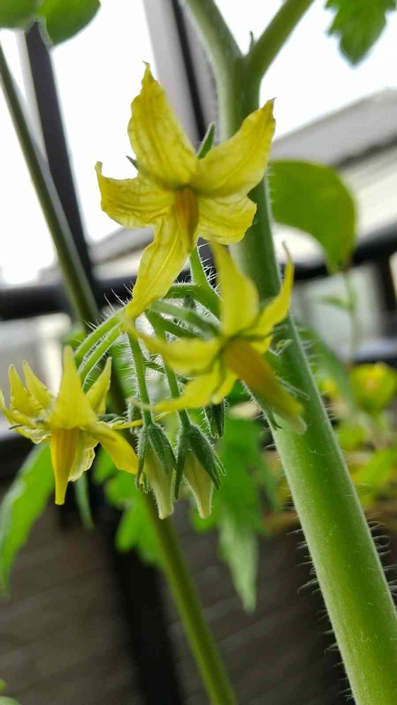おはようございます😃ミニトマト(つやぷるん)の花が咲きました。この品種は初めてなので実がなるのが楽しみです🍅