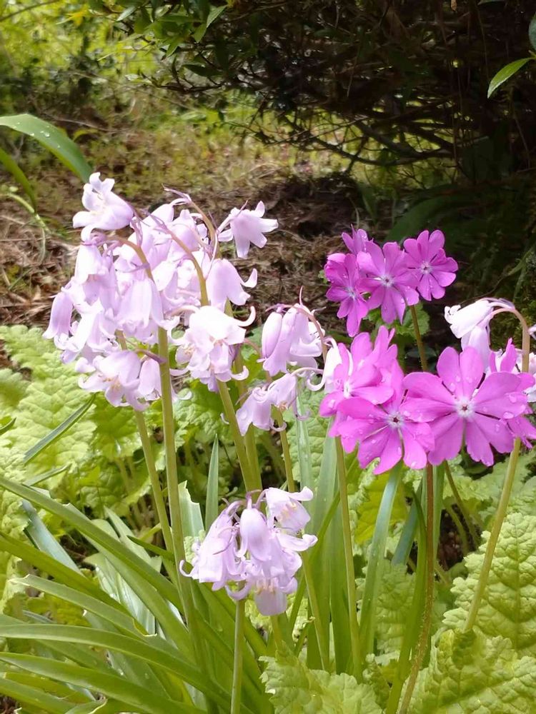 シラーカンパニュラータと日本サクラソウ 競って咲いてます🌸🌸🌸