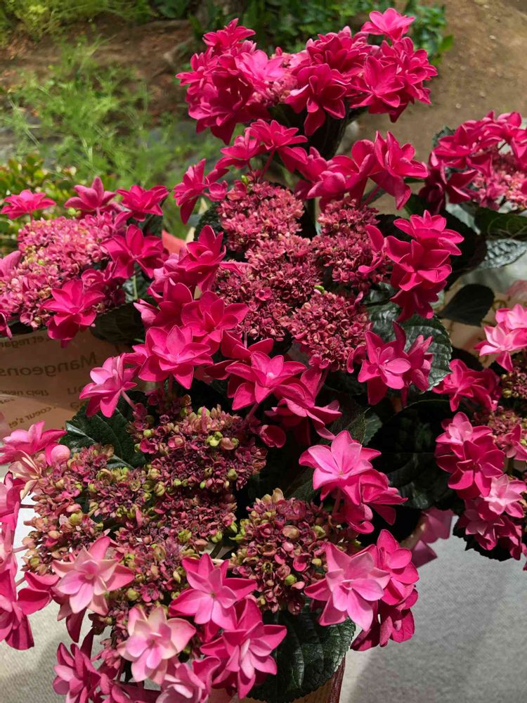 赤い紫陽花って言われてるようですが、濃いピンクで可愛いです💗