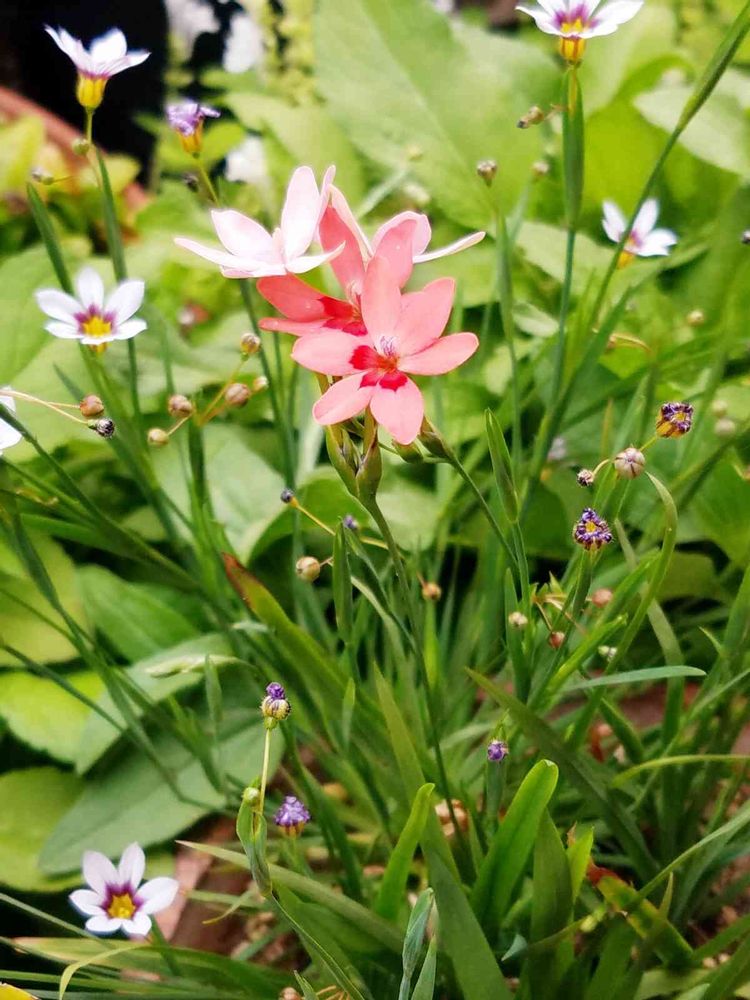 ニワゼキショウと仲良く咲いてます😃