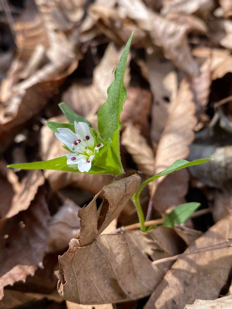 ワチガイソウの仲間にしては葉の幅が広く、花弁の先が切れ込んでた。