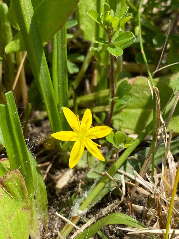 葉っぱが他の植物に紛れてたので地面からぽつんと咲いてるように見えた。
