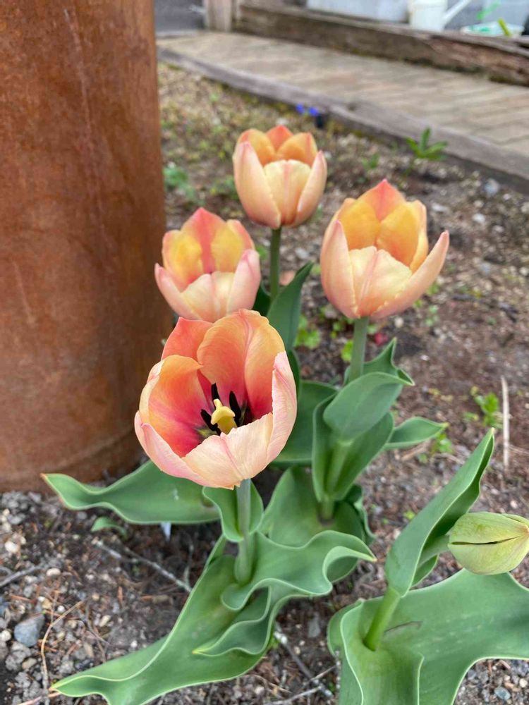 ここには 去年購入して早咲きもも色チューリップが植えてあったんだけど…