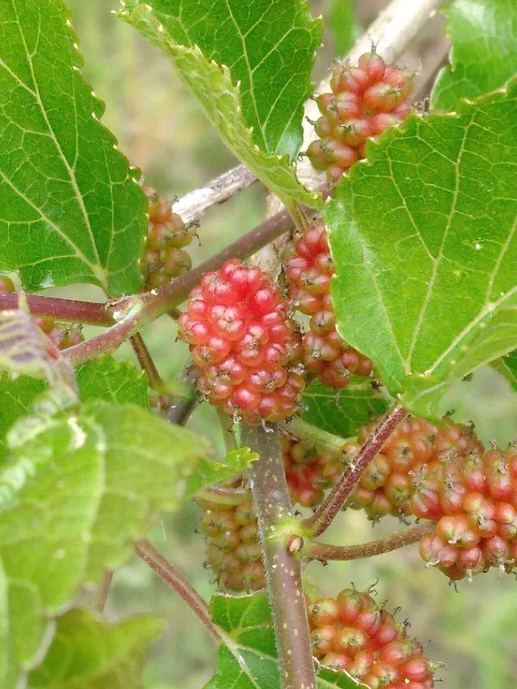 桑の実成長記録。順調な熟し方。これから黒く熟す。病気だと発病前の段階で、こうならない。おかしな熟し方する。