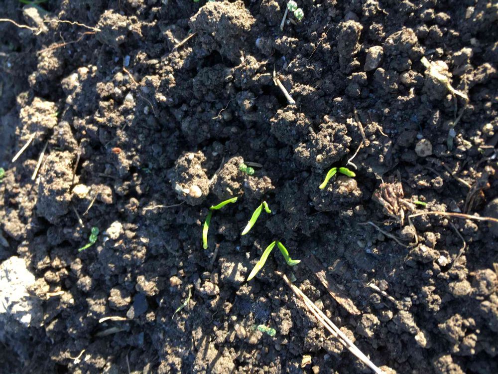 …まあいい。雑草みたいだが、ホウレンソウの芽が出ました。