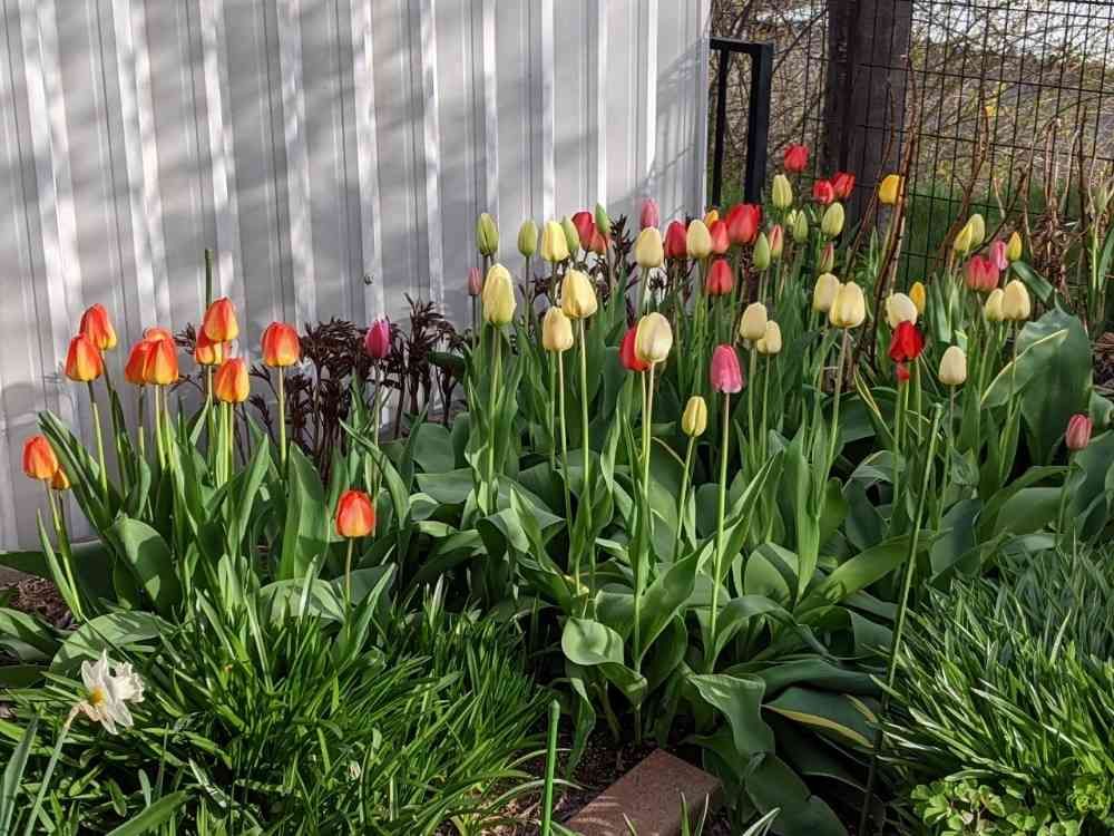 今までのいろんな種類のチューリップが、年数が経つにつれ、先祖還りをしたものです。八重だったり、斑がはいっていたり、ギザギザだったりしたチューリップが原種に還ったので、ここにまとめて植えてあります。思い出がたくさんつまったチューリップを最期まで見ていたくて。庭には150輪くらいのチューリップがあちこち点在しています。それらもいずれ、ここに来ます。大切な宝物ちゃん。🌷🌷🌷🌷🌷