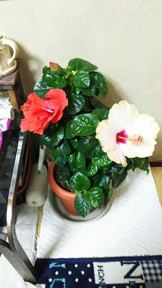 今、家に帰ったら部屋に入れたハイビスカス🌺が種類違いで2輪咲いていました😲