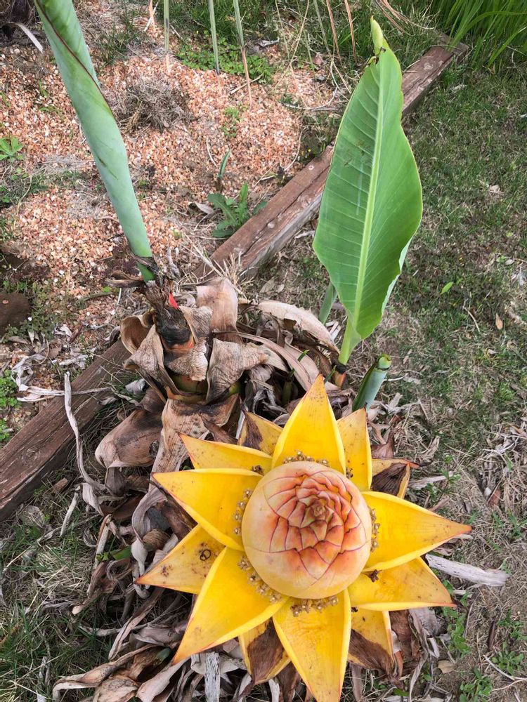 スミマセン葉っぱはよく見慣れた芭蕉っぽいから目が行きませんで、花(蕾?)に釘付けです。👀