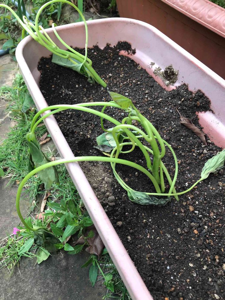 だいぶ萎れてしまっているけど、サツマイモは雑草並みに強いらしいので回復に期待しましょう。