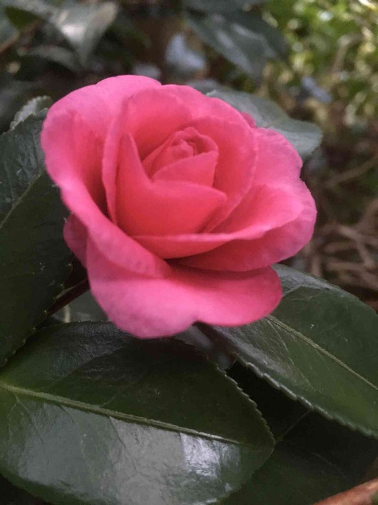 こんばんは(o^^o)庭に咲いているさざんかです🌺主人が昔、挿し木をしておおきくなったそうです🌳全体はとりにくかったので、一輪の花をアップしました💕