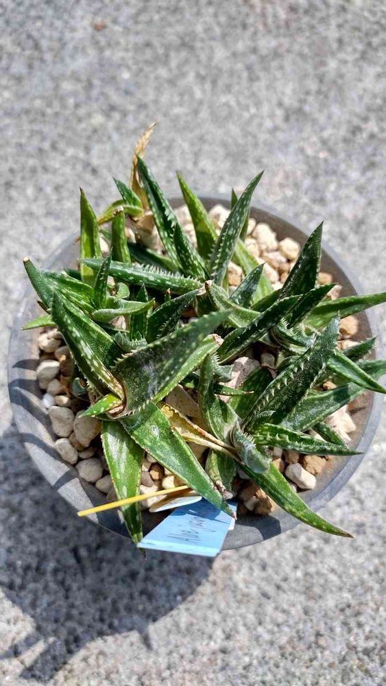 アロエ ジュクンダ。家のジュクンダの20年生以上の孫株で三軍です。屋外越冬させて根が上手く張れてないので植え替えました。今年のGWは植え替えしてると雨が降ってきて萎えます。結局2割以下のアロエしか植え替え出来ず残念。