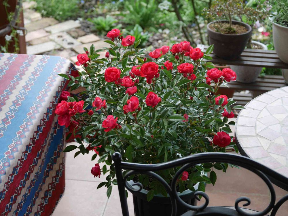 バラマザーズデイが、例年の朱赤でなく、深い良い赤で咲きました。好みの問題ですが…💦