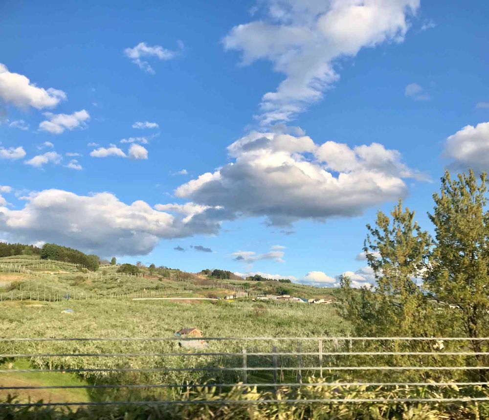 青空に低い雲とリンゴ畑が凄くいい感じてすね😃今年も美味しい🍎が沢山できることでしょう☺️🍎
