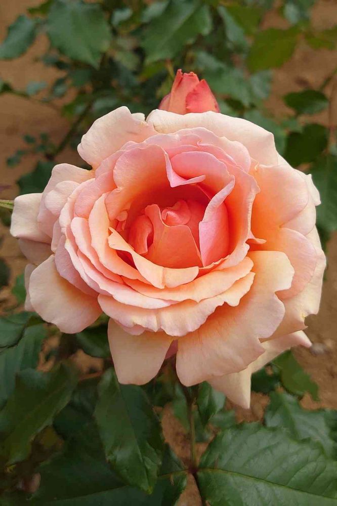やわらかいアプリコットの花色とややウエーブのかかったやさしい花形がとけあうように調和しています。