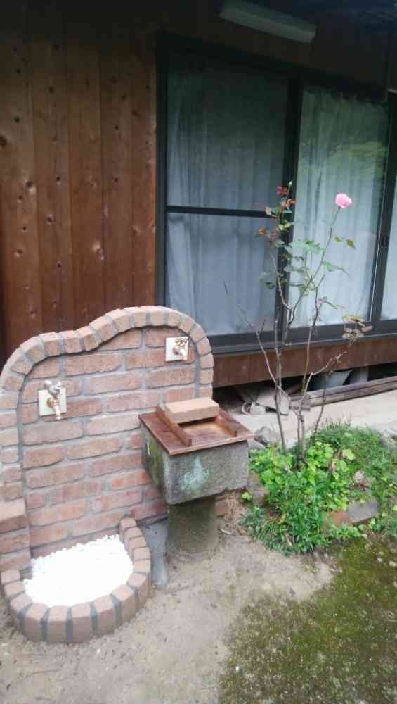 レンガ造りの水道横のカリナさんが可愛く咲きました。水道造りの様子はみどりのまとめにアップさせて頂いてます。