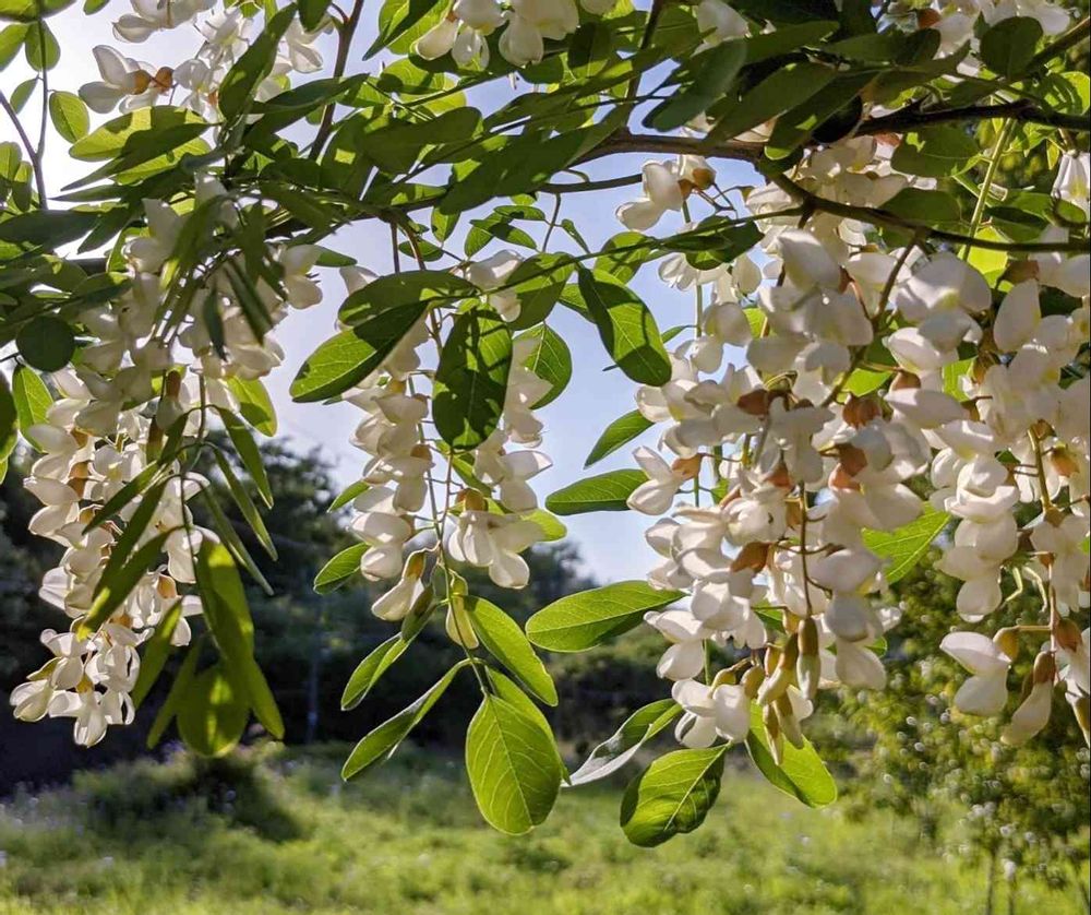 NOKKOの「人魚」という曲で歌われてたのが、こっちのニセアカシアのイメージという話を聞いたことがあり、見るたびに口ずさんじゃいます。(*´ー`*)