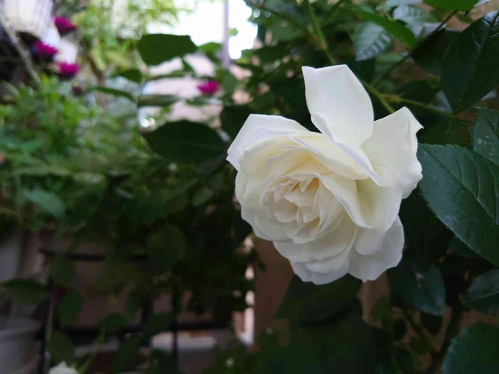 ベランダでこんな綺麗な白いバラ✨を咲かせるなんて