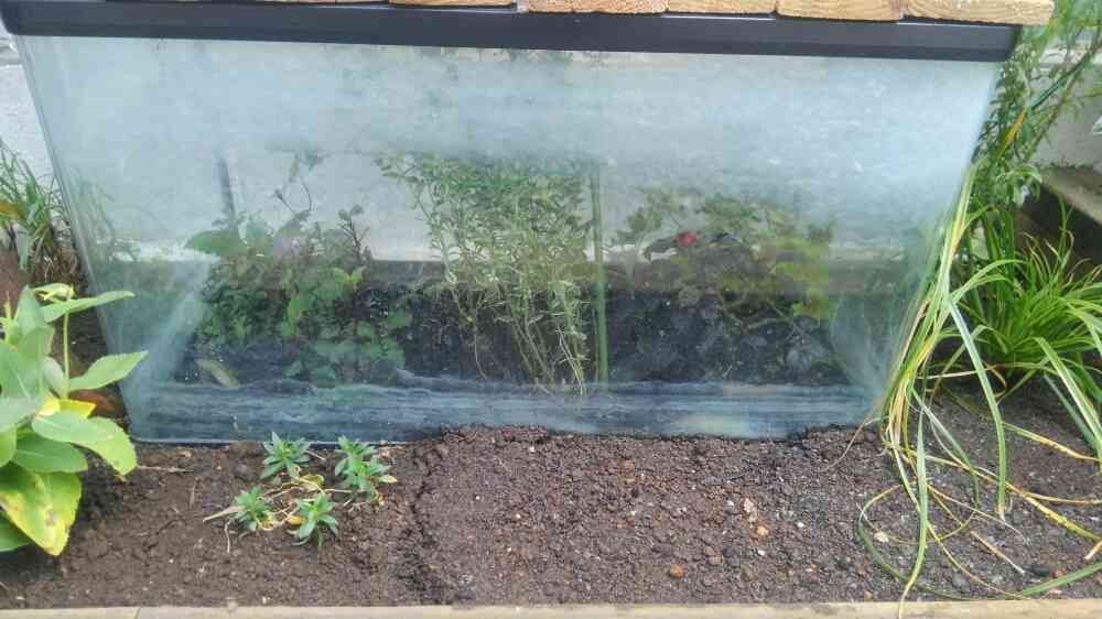 廃棄予定の水槽を簡易温室に