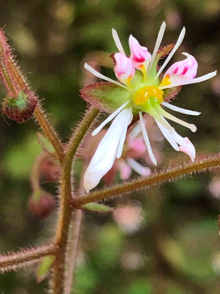 パッと見、ユキノシタなんですが、ちょっと離れてみると、この雄しべたちが花火や星に見えてきて、ユニークで可愛い花ですね😍💕