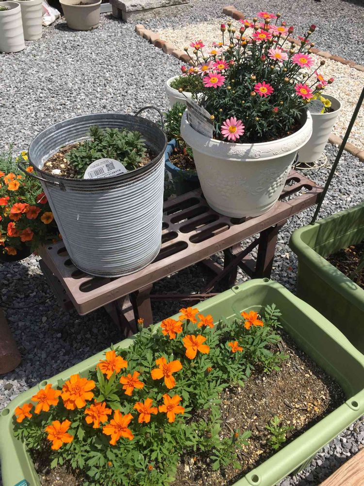 下のマリーゴールドは去年コンパニオンプランツとして活躍したマリーちゃんの種をばら蒔いたら何もせんでも花が咲いてくれました🌸マリーゴールド強し。