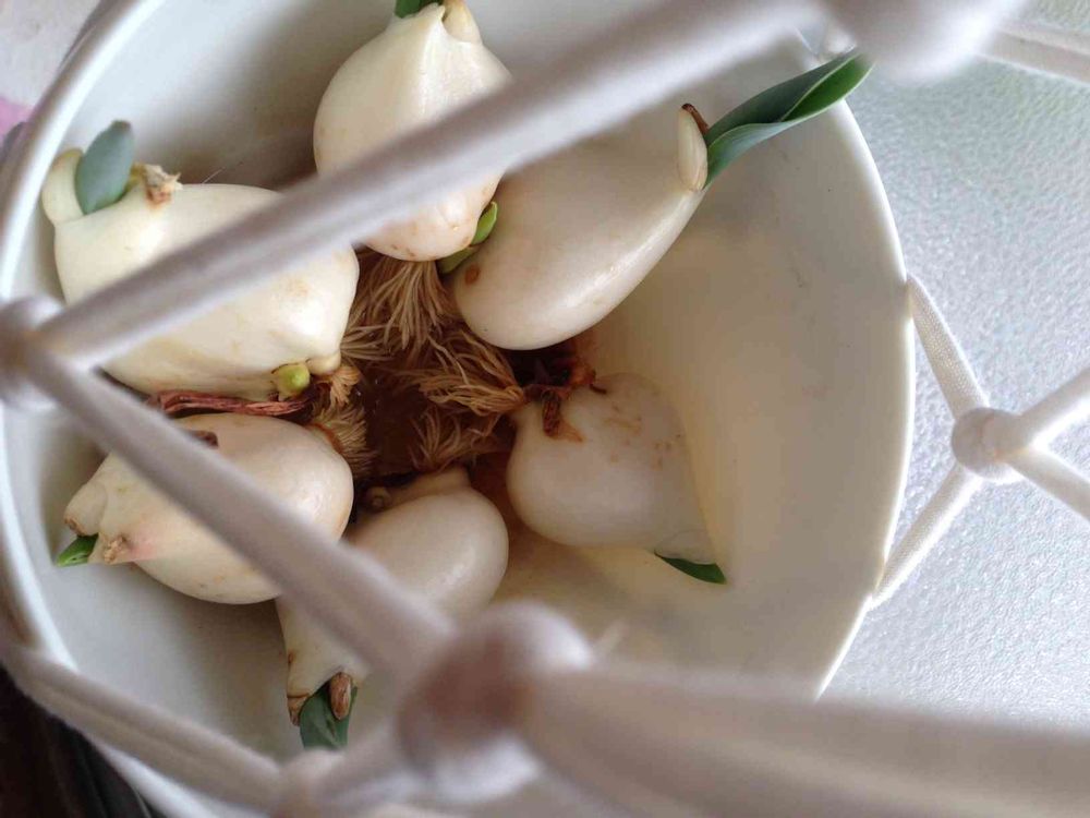 水耕栽培のチューリップ、芽が出てきたので日向に移動🌷