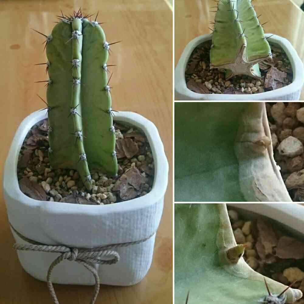 段々緑色がまだらに薄くなってきて、ある日手があたってしまってパタっと倒してしまったら、全く根も出ていなくて、もう最終水耕栽培しかないかなと持ち上げて見たら、2箇所根らしきものが出ていました🌵✨✨
