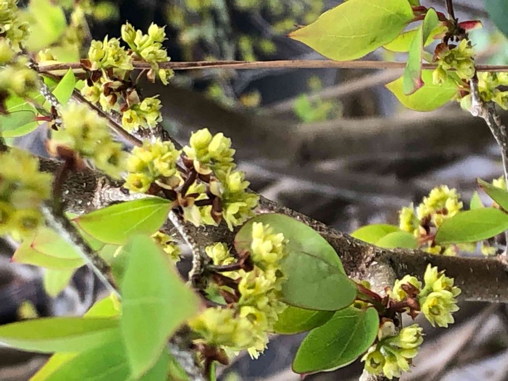 4月11日、日光市の大谷川付近のの民家の庭先に、樹高2mほどで、枝の同一箇所から、花と葉が出ていて、更に、5〜8輪ほどの花序を下げる、いまにも満開を迎えそうな、まだ花は開き切っていませんが、花の直径が3〜5mm程で、薄黄色の5〜6枚の花びらを持っていそうな花が、可愛らしく咲いていました⁉️です⁉️