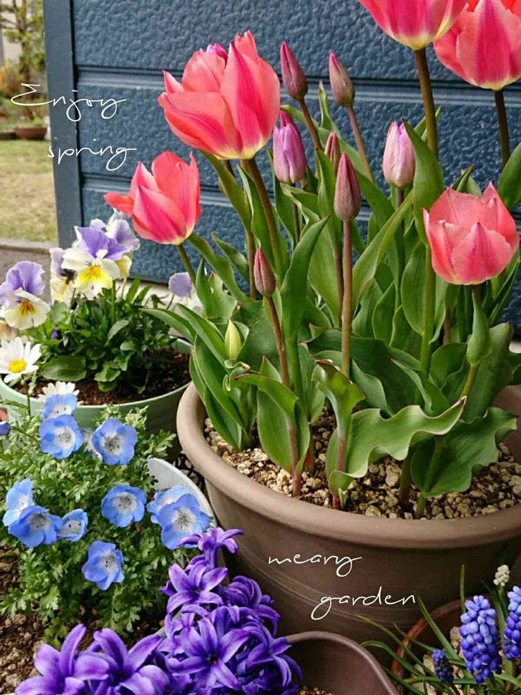 チューリップ パンジー ヒヤシンス ムスカリ ネモフィラ…と春の定番5種 !! 普通だけど絶対外せない!近づけは甘い香り〜春体感中🤗