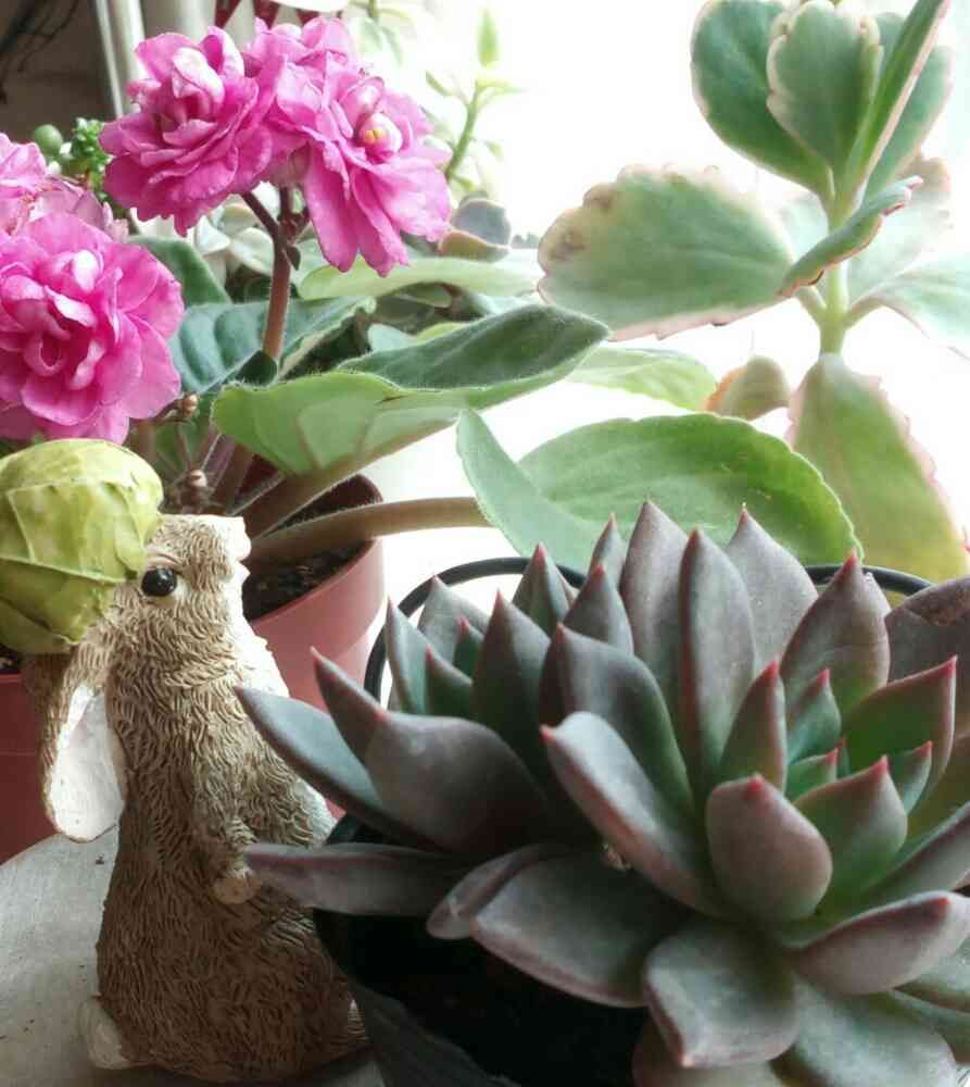 多肉ちゃん達は、ねこきちくん、ウサちゃん、色んな子達に守られて幸せですね😁❤