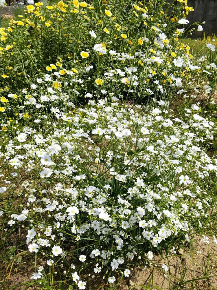 真っ白なかすみ草と奥に見えるのは「春菊」です!
