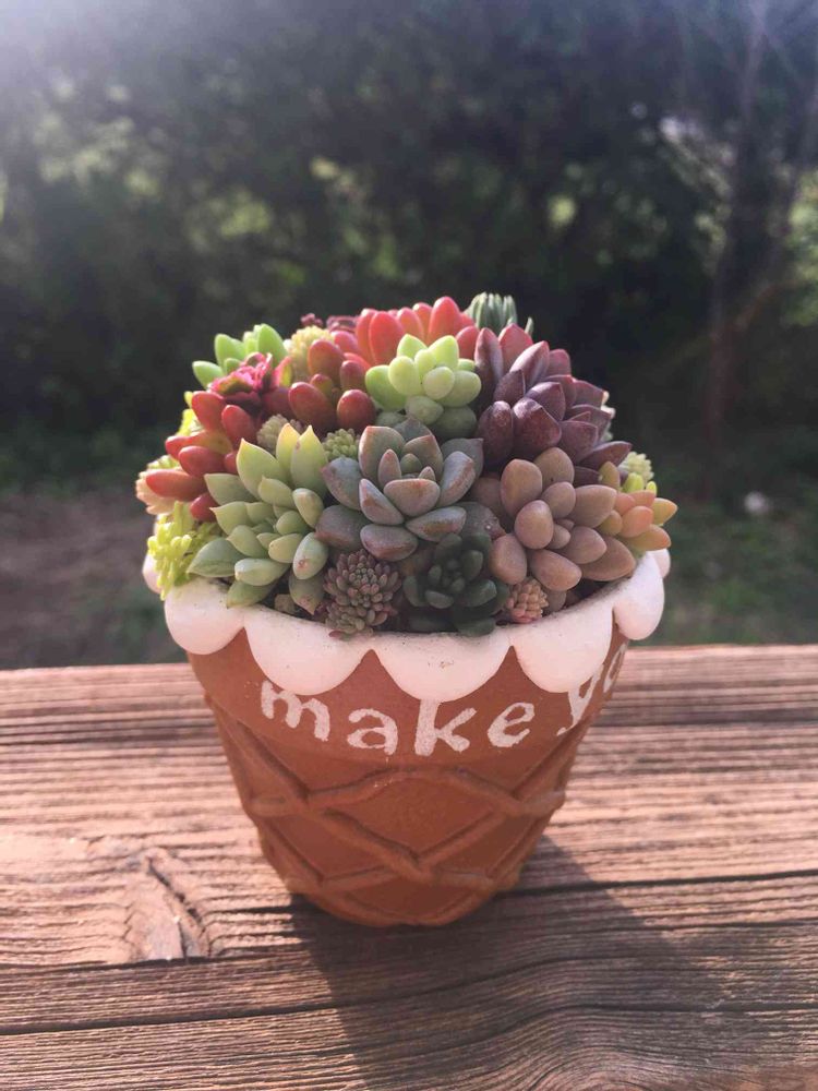 土を多めに盛って真ん中は少し長めの多肉を挿してあります❤︎꒰ ♡´∀`♡ ꒱
