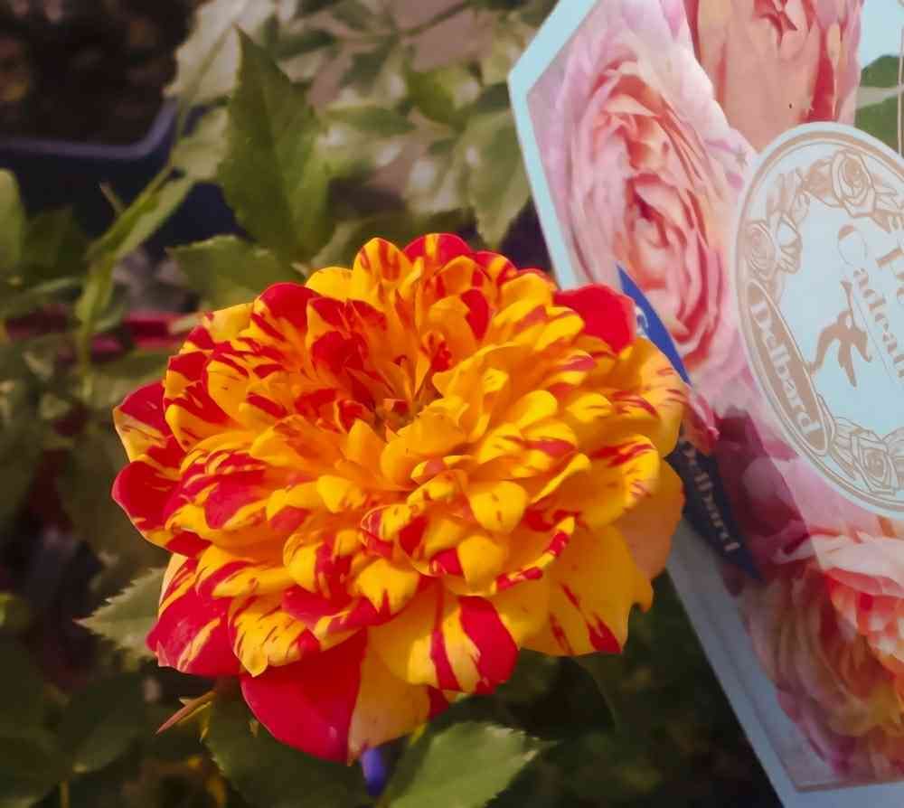 オレンジと赤の絞りで、ここまではっきりした色のバラが有ったのですね‼️