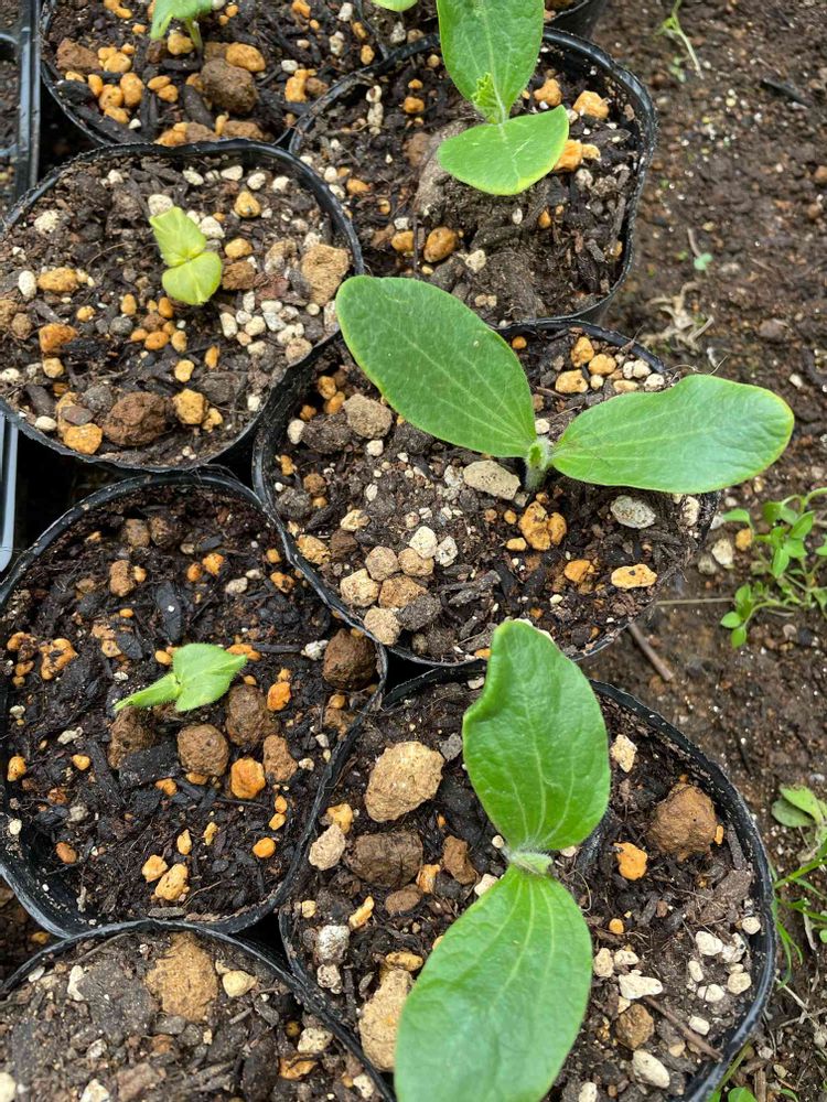オクラとズッキーニの芽、発芽✨😃やっとここまでになりました😂❣️