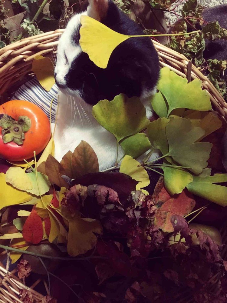 鼻スンスンして葉っぱの上乗りました→せっかくなので 山盛り葉っぱかけてやりました☺️