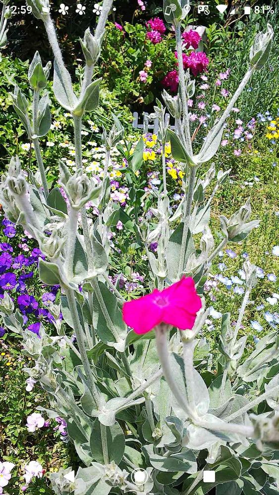 一昨年、こぼれ種で花壇のあちこちに生えてたスイセンノウですが、ロゼッタのように葉だけが大きく広がるばかりで花枝が少しも伸びて来ませんでした🙄