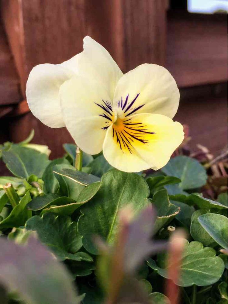 切り戻したビオラちゃん🌺1つお花が咲きました😊まだ脇芽もあまり増えた感じがないけど少し安心🌱